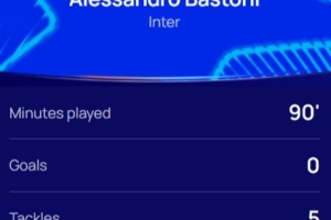 体育资讯4月9日讯 在欧冠淘汰赛首回合,国米2-1击败拜仁。 本场比赛巴斯托尼首发出战表现出色,贡献5次抢断,5次赢回球权,最快冲刺速度32.4km/h,跑动距离达到10.6km。...