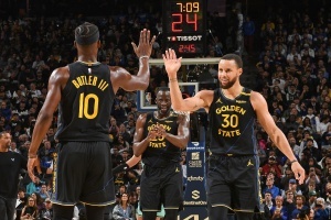 上半场比赛,勇士首发五虎进攻端都有不错发挥,得分很是平均,其中库里11分、巴特勒10分,追梦9分,三人最高合砍30分;另外波杰姆斯基8分。穆迪7分。